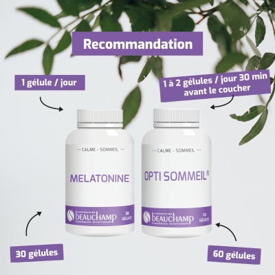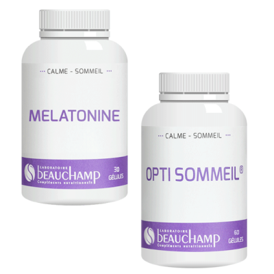 1 Pilulier de 30 gélules de Mélatonine et 1 Pilulier de 60 gélules d’Opti Sommeil®